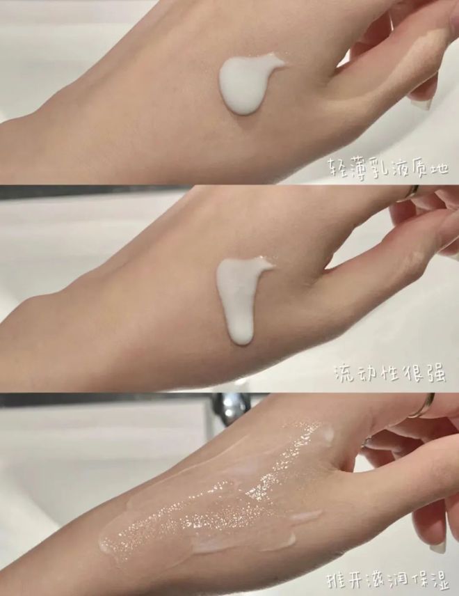 跟他家的面霜相比,这款精粹乳的流动性确实很强,抹一抹就能完全推开并被吸收。